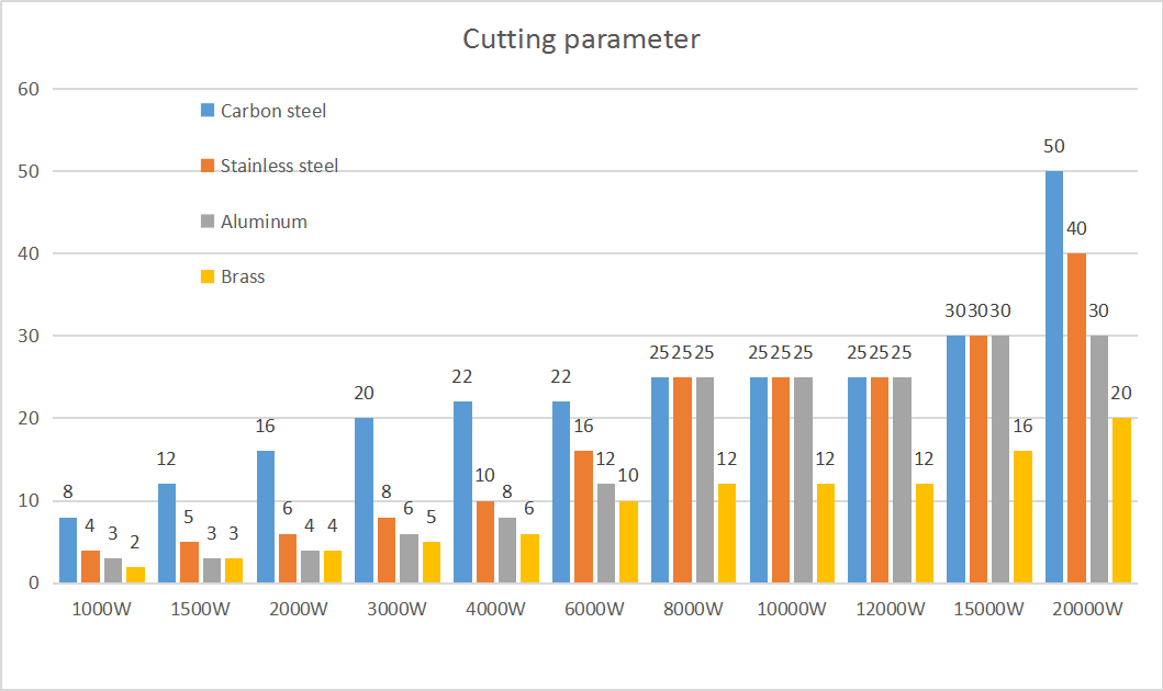 2) سمك القطع والمواد: قوة مولد الليزر.